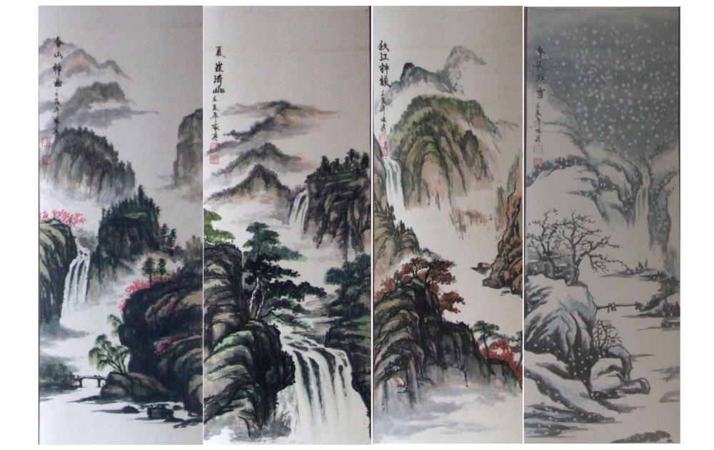 此四条屏分作:春、夏、秋、冬四季。
